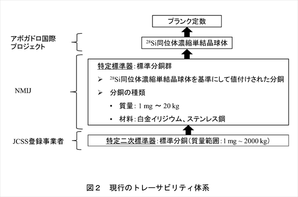 特定標準器は、計量法に基づく計量法トレーサビリティ制度(JCSS)登録事業者が保有する特定2次標準器の校正に用いられる。